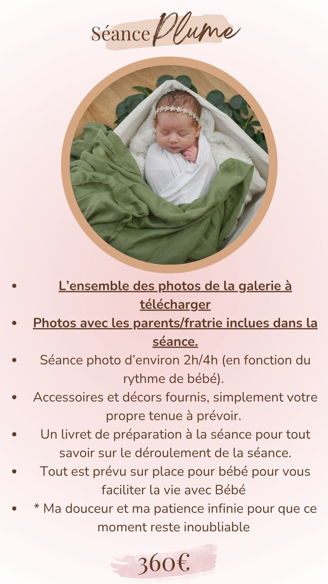 C'est vrai qu'en plein post partum, on est mieux chez soi, c'est pourquoi je me déplace avec plaisir chez vous avec mon matériel, afin de reproduire un mini studio chez vous.